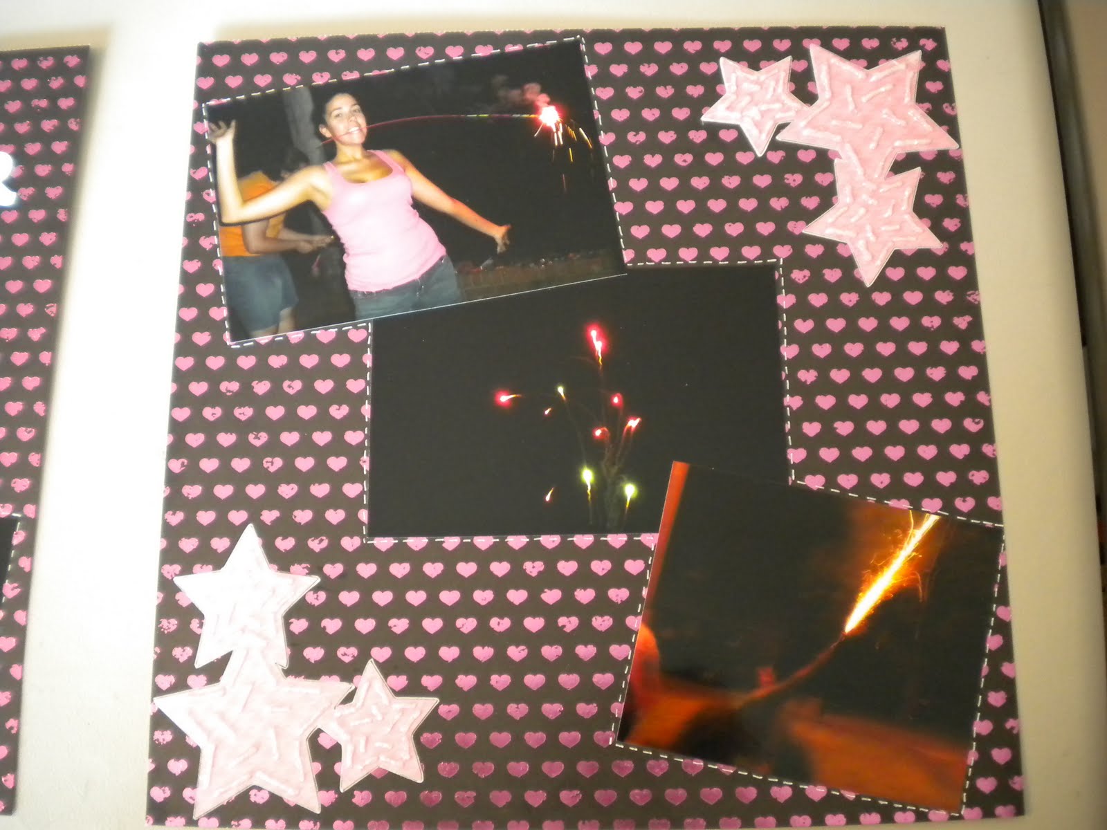 I just got the Rock Princess cart last week and I thought this title on there would be great for a layout with fireworks. The stars are also from the Rock Princess cart. I cut the top layer in glitter paper and then I added crystal stickles to the lines on the stars in the corners. I also used a white opaque pen to do some stitching around the pictures. And as you can tell by the pictures, we practiced a lot of safety when it came to handling the fireworks, lol.