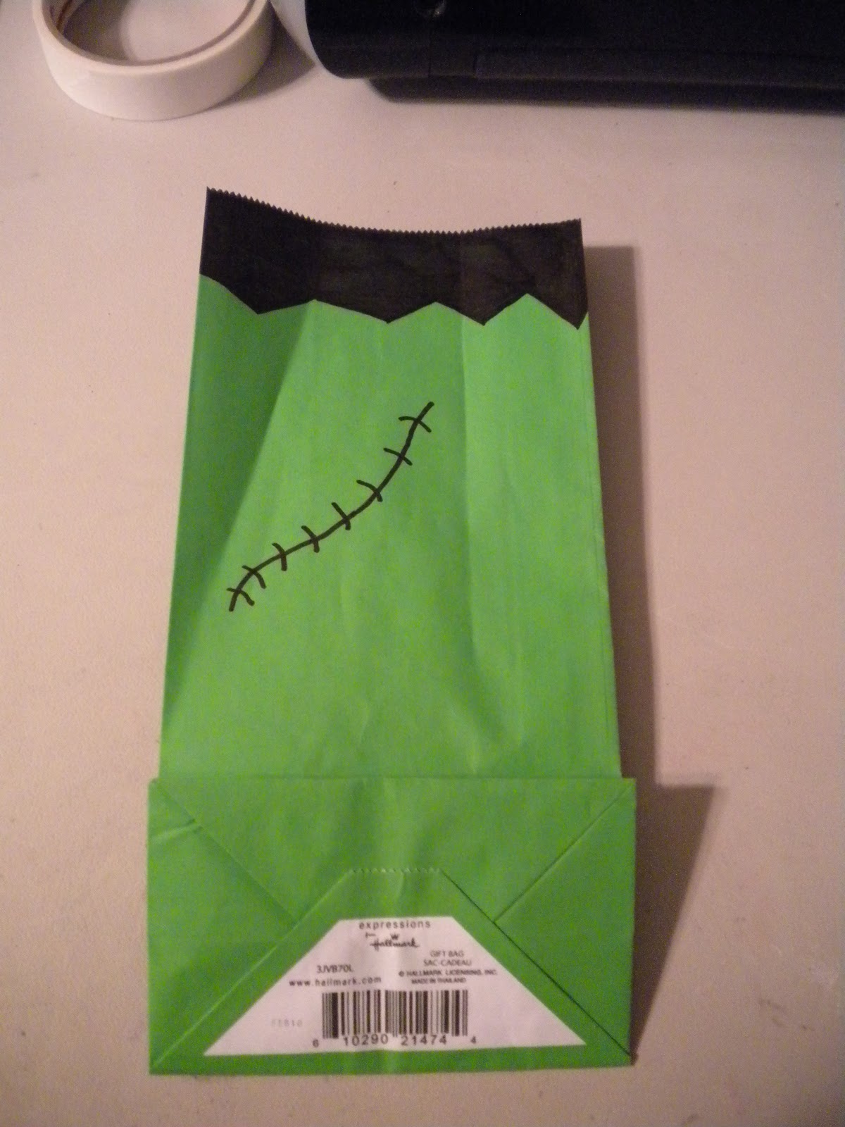 For Frankenstein, I used large google eyes, a black marker and a white opaque pen for the details.